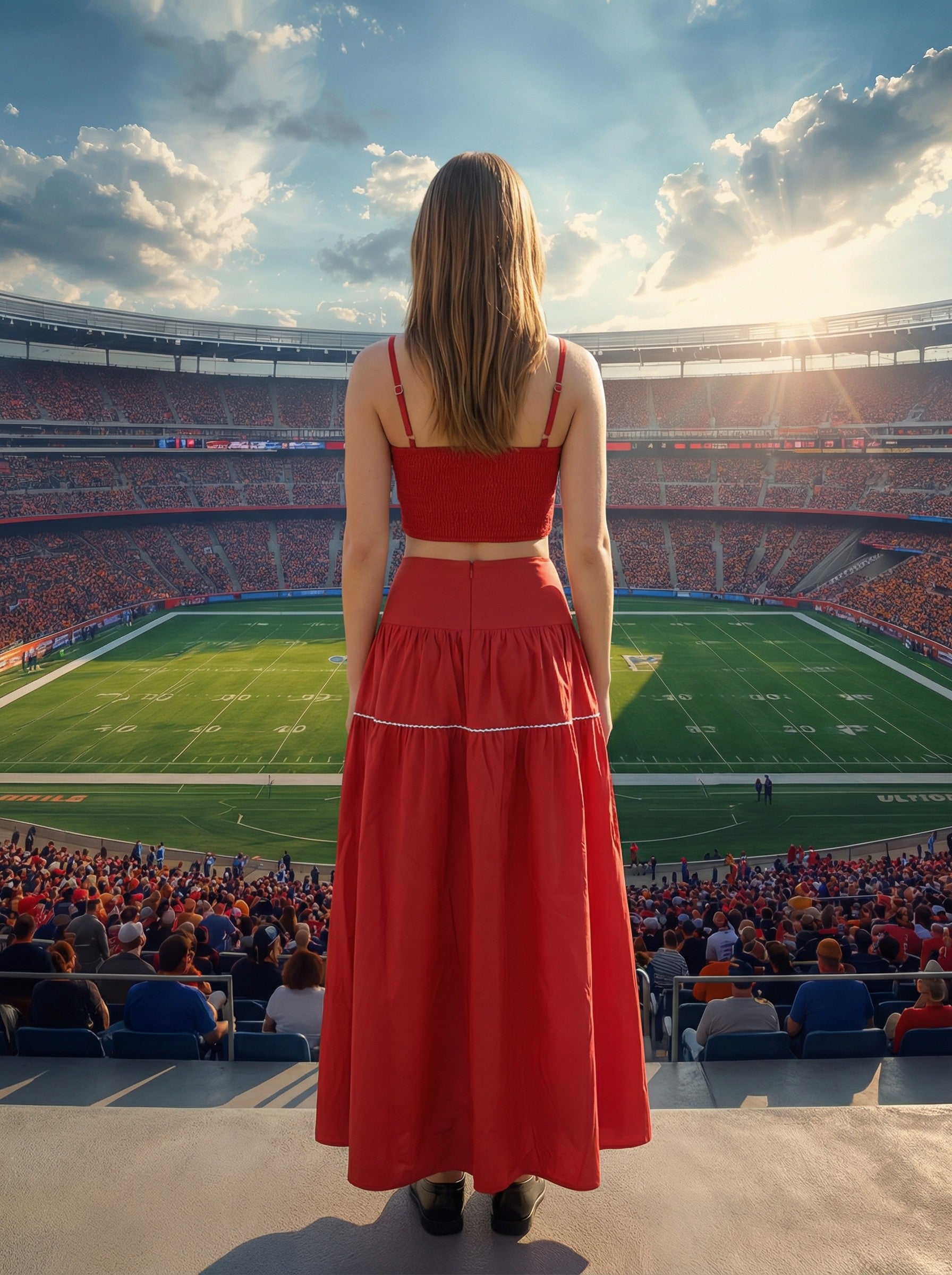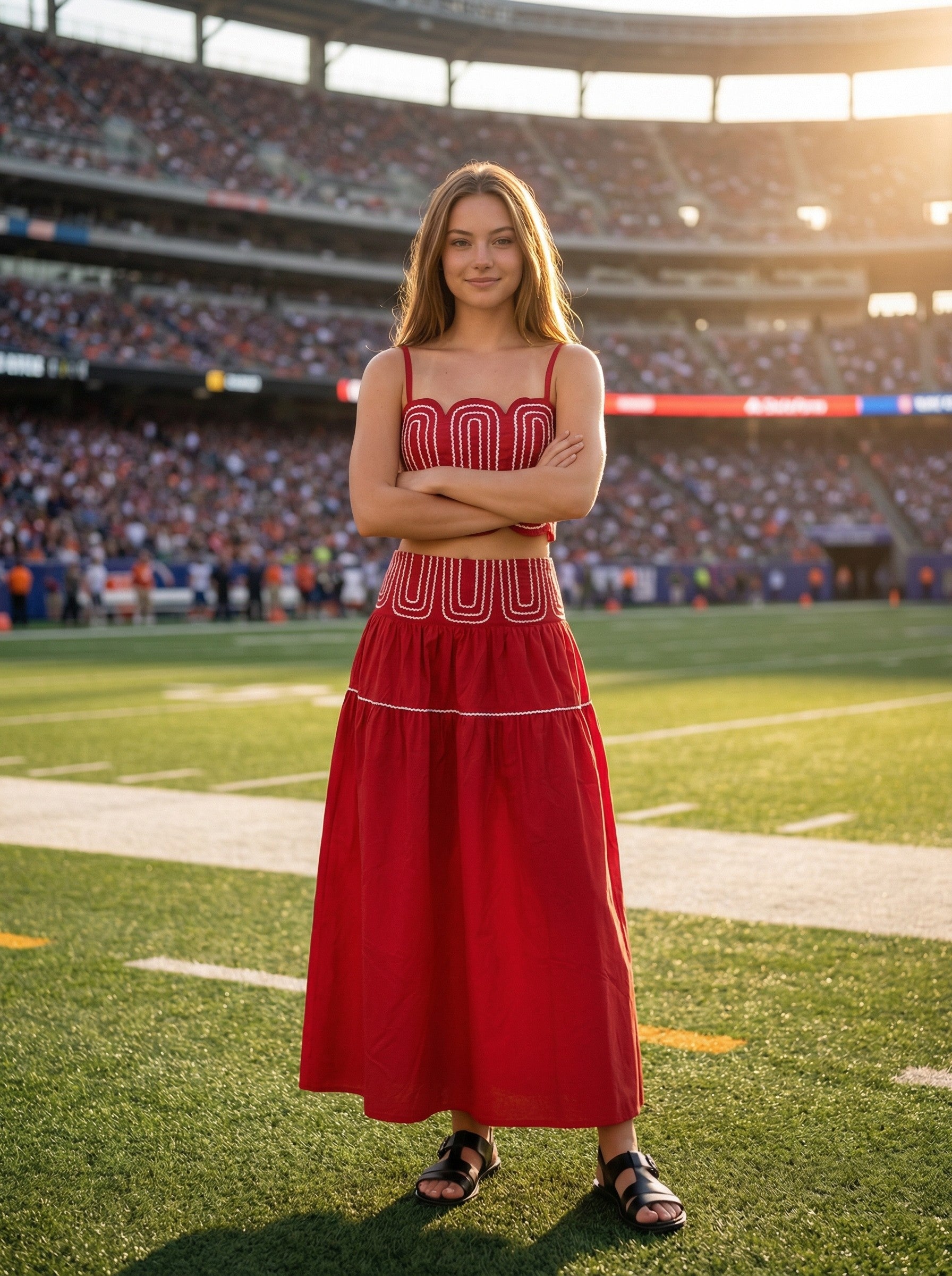 American Spirit Maxi Skirt Set In Red & White